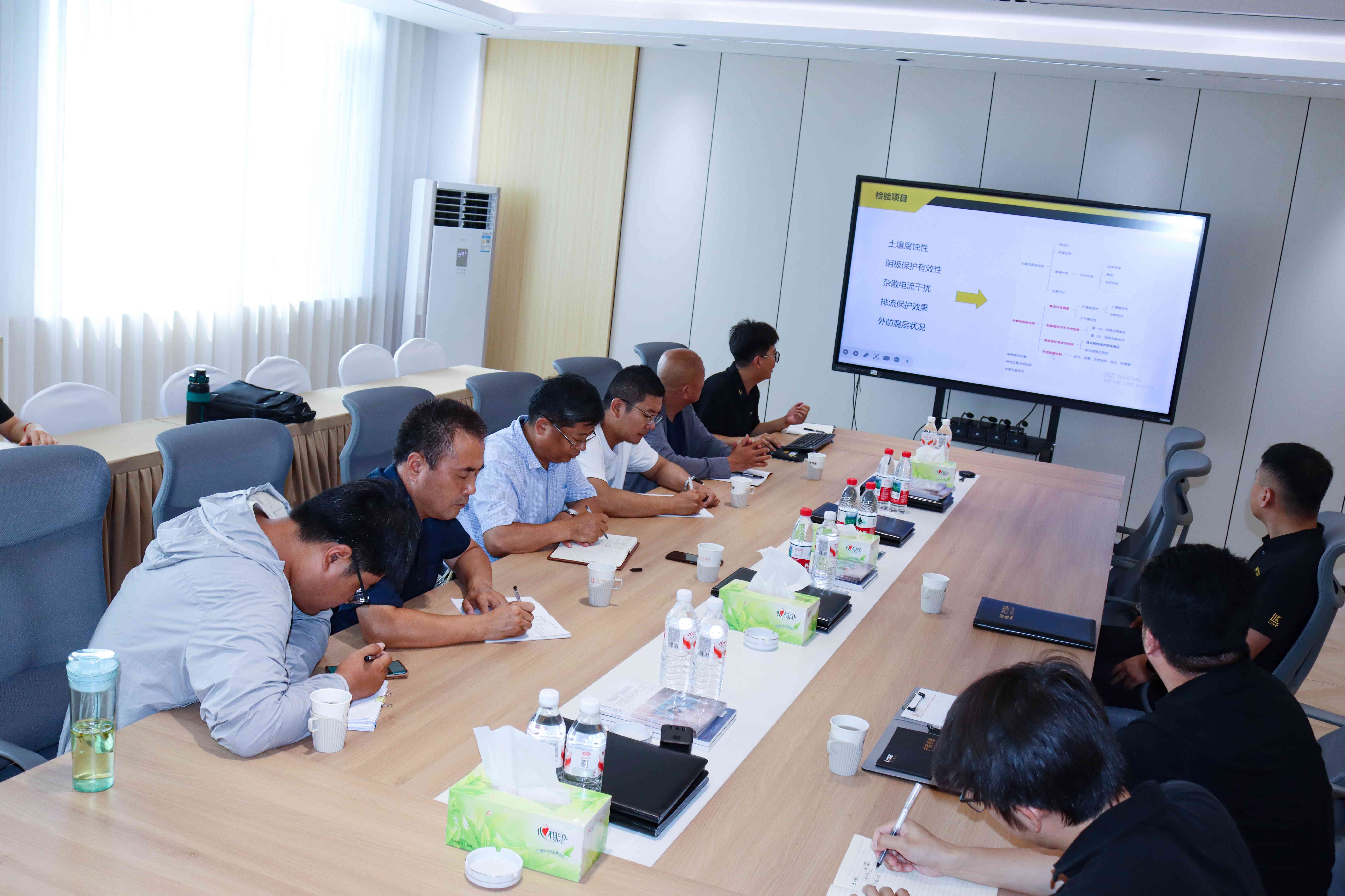 隨后各位領(lǐng)導在薛總的帶領(lǐng)下,在會議室共同商討埋地管道的相關(guān)事宜,會議結(jié)束后到埋地管道實訓基地進行操作演示。