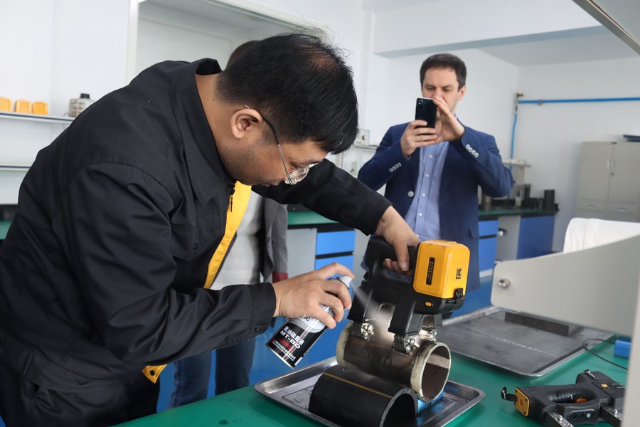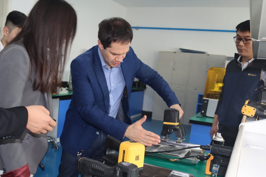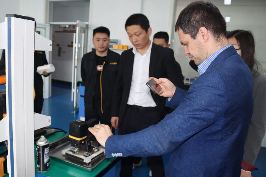 Denis先生先后參觀了我公司無塵車間、實驗室等,對我公司自主研發(fā)的無線式磁粉探傷儀、管道磁粉探傷儀、角焊縫磁粉探傷儀等設備進行性能測試,均達到預期效果,并對我公司研發(fā)、生產及售后能力給予高度肯定。